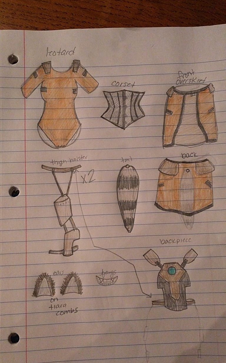 Being a feminine plus size woman, I usually avoid overly garish or frumpy outfits– so Rocket’s neon orange space shoulder-to-knee bulky jumpsuit was the perfect costume choice, huh? Enter me, ridiculous designer extraordinaire.