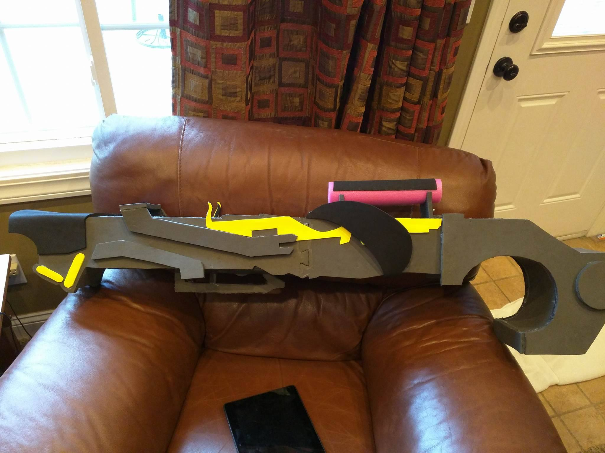 After the first coat of paint. Here is where the gun finally started to look like a gun instead of a giant blob of foam pieces.