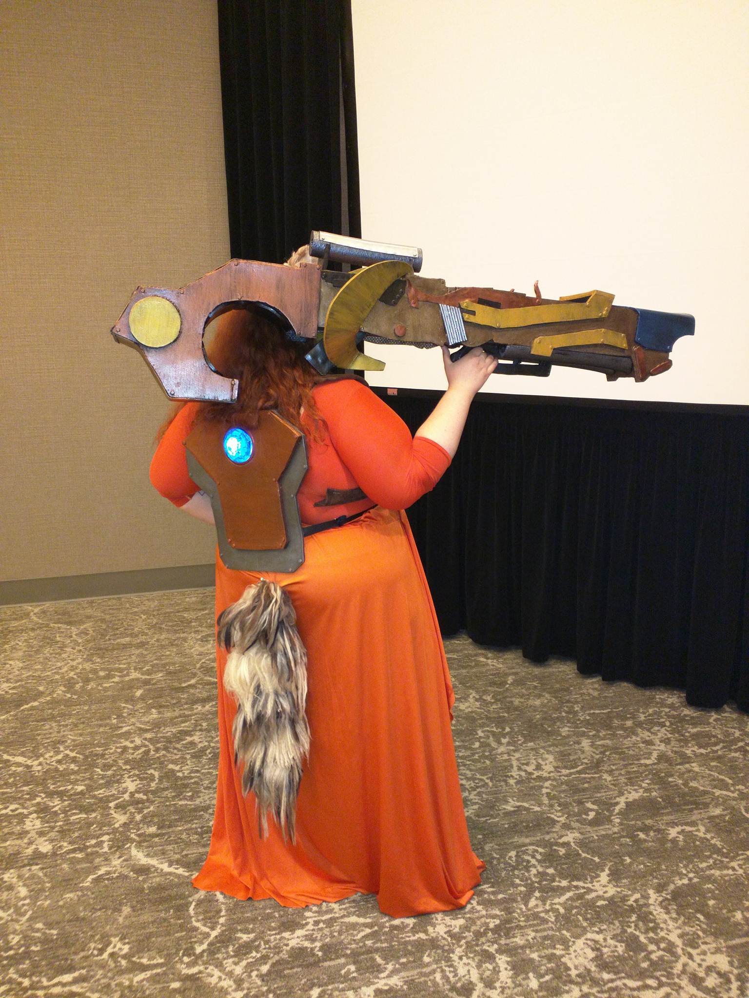Oh. My. Lawd. That gun. I had never built anything before and I chose what is probably one of the biggest guns in the cosplay world. It was awful. And wonderful. But mostly awful. I absolutely destroyed our living room with foam, glue, paint, and sobbing. I whined to Alison and my new friend Joe incessantly, and constantly asked for their opinions. I hated that stupid gun. I was in over my head and I knew it. But they were gracious, and kind, and the effervescent cheerleaders of my dreams. With their guidance, I finished it. And it was alright.