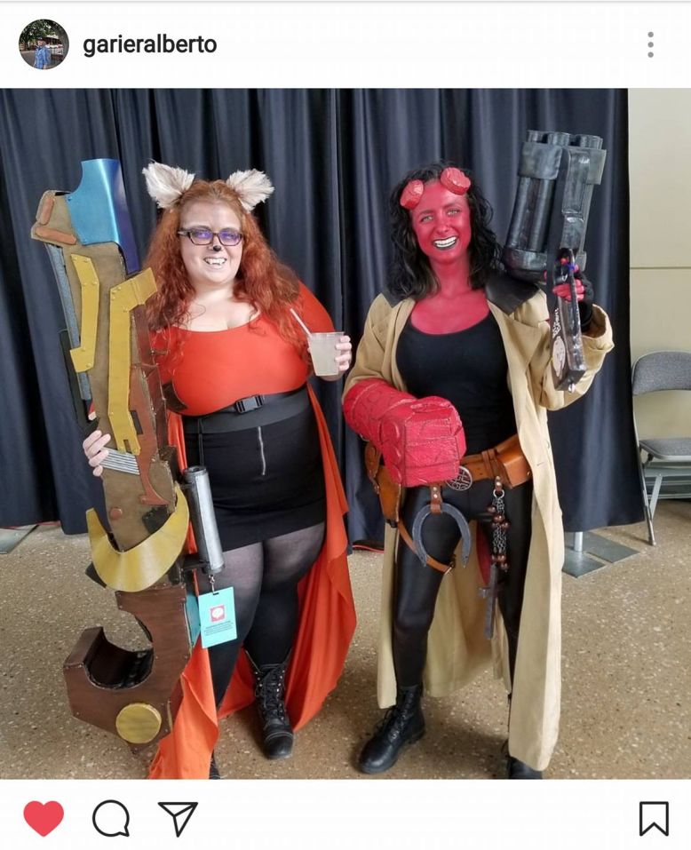 So, there you have it. My first cosplay. It was a helluva battle getting it all built, but I had a great time with a great friend. I’ll update this post with links to tutorials I followed and products I used if people are curious. I have a lot to do on this cosplay before I ever wear it again. I need to make the thigh holsters, readjust and reattach the shoulder pads (my Velcro popped midday and made for a treacherous safety pin situation), and add the brown/black detail panels onto the skirt. A snap crotch would also make bathroom breaks way less labor intensive.